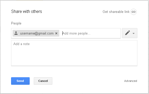 - 在“人员”部分下,添加您希望与其共享文件的电子邮件地址或 Google 群组。为避免发送通知,请点按更多