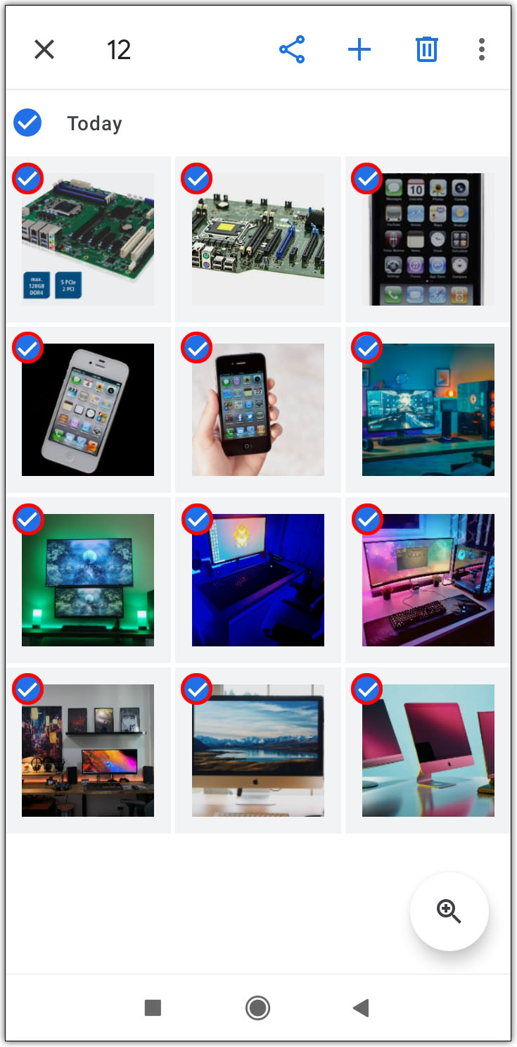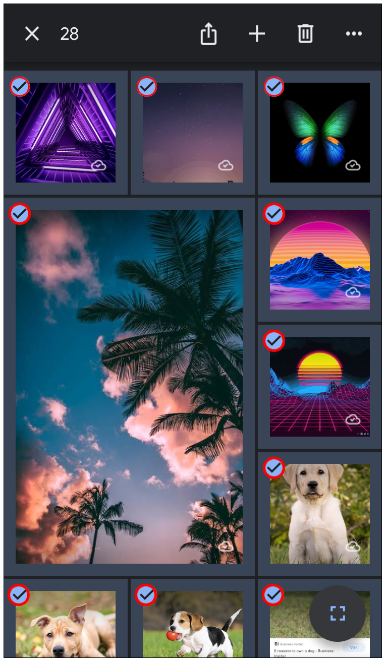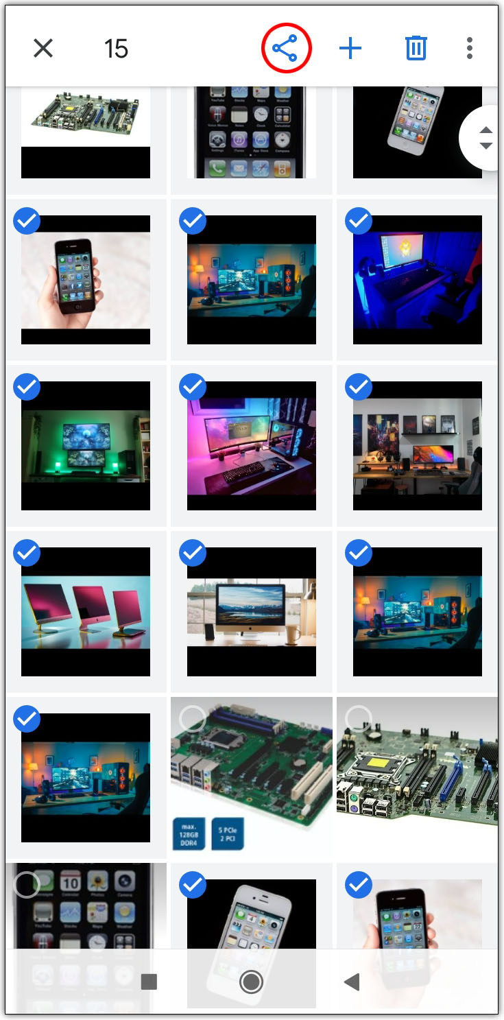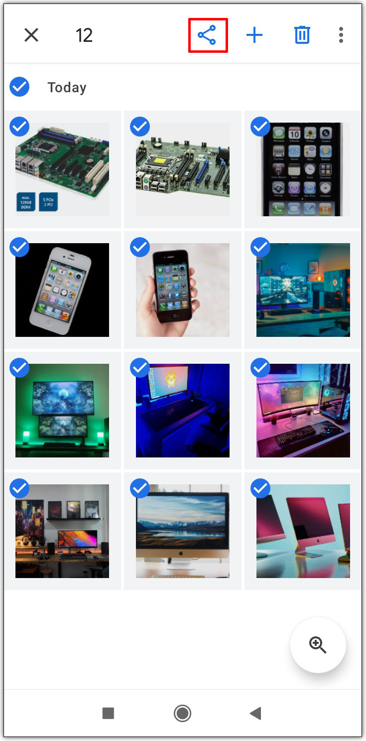 - 突出显示要分享的所有照片,然后点按屏幕右上角的加号图标。