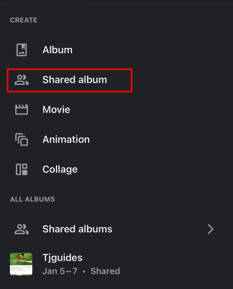 - 选择“新建共享相册”。