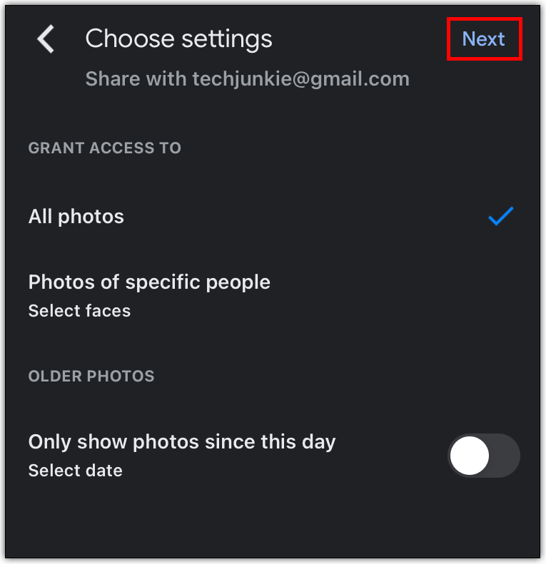您是负责拍摄照片并将其安全存储在 Google 相册中的家人或朋友吗?如果另一个朋友或亲戚要求您与您分享所有这些照片怎么办?你怎么做呢?首先,你必须让这个人成为你的分享伙伴。请务必按照上述步骤执行此操作。然后,执行以下操作: