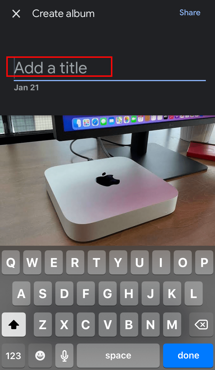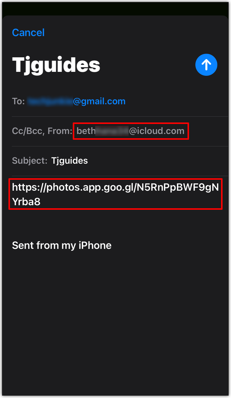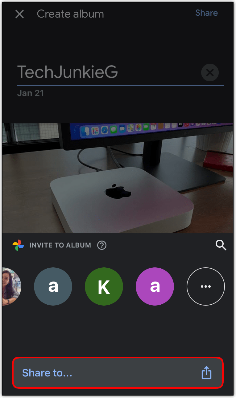 - 进入相册后,点击分享图标并写下您想要分享链接的人的电子邮件。
