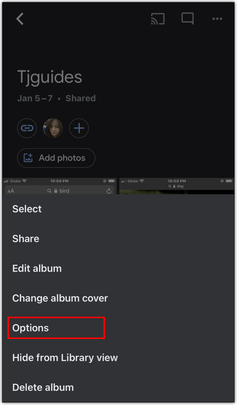 - 选择相册并点击屏幕右上角的三个点。