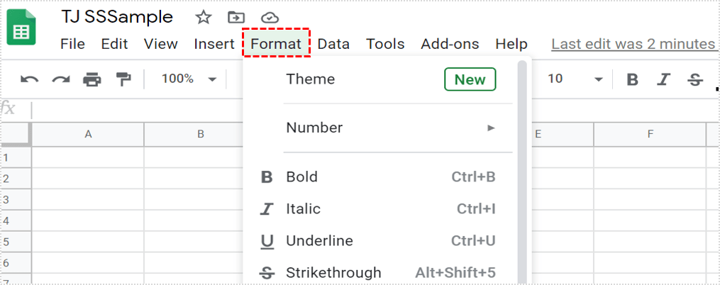 - 导航到工具栏并选择“格式” ”。