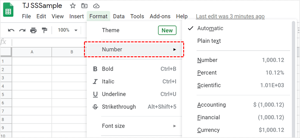 防止 Google 表格删除电子表格单元格中前导零的最简单方法之一是禁用格式化数字的“自动”设置。