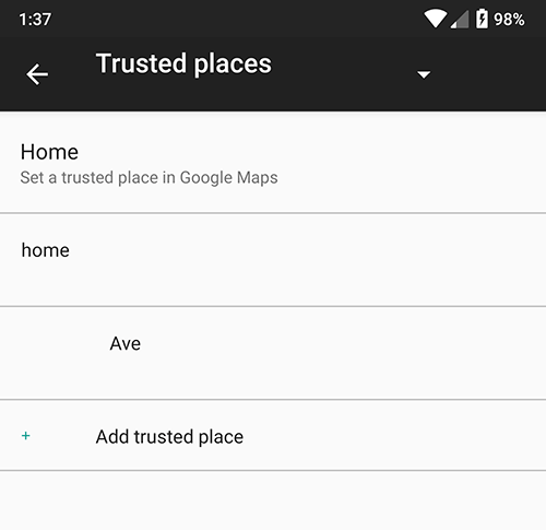 - 可信地点:可信地点功能使用手机中的 GPS 来检测您在您选择的安全位置,并自动为您解锁手机。一旦您离开您的位置,您的手机就会重新锁定,从而确保您和您的设备安全无虞。