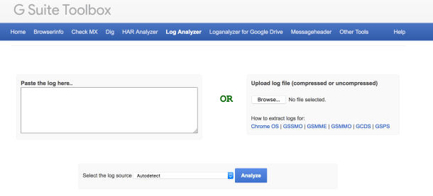 你还有日志分析器,一个可以分析其他谷歌产品给出的日志文件的工具,比如来自Chrome OS的日志。该工具甚至会向您展示如何从某些产品中提取日志以上传它们并对其进行分析。当然,它无法分析所有内容。有一个完全独立的工具用于分析 Mac 和 PC 的 Google Drive 日志。通常,此云端硬盘专用工具能够处理更大的日志文件并为您提供更好的分析。