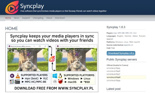 Syncplay 略有不同,因为它有助于同步您自己的媒体播放器,以便您可以观看您拥有的电影。它适用于大多数 PC 操作系统,但没有移动应用程序。它可以同步 VLC 和其他媒体播放器,因此您可以在台式机或笔记本电脑上彼此同步观看媒体。
