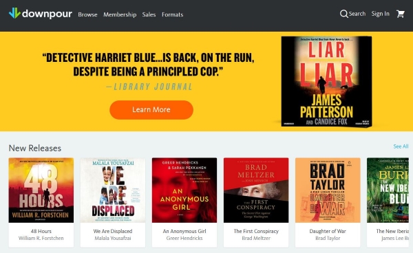 Downpour 是另一种提供订阅或直接购买的服务。缺点是它使用与 Audible 相同的奇怪信用系统。每月 12.95 美元,您可以获得 1 个积分,您可以用它兑换一本书。您也可以以适度的折扣直接购买以拥有和保留。 Downpour 不使用 DRM,因此您确实拥有这本书的副本,并且可以在您想要的任何设备上播放。