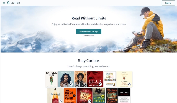 Scribd 是另一种 Audible 替代品,可让您收听有声读物。它每月收费 8.99 美元,可通过其应用程序访问杂志、书籍、文档和有声读物。这里的缺点是您无法下载大多数有声读物,并且据我所知最终不会拥有它们。明显不友好的条款和条件明确地告诉您,即使网站使用标语“阅读无限制”,您的权利也受到限制。