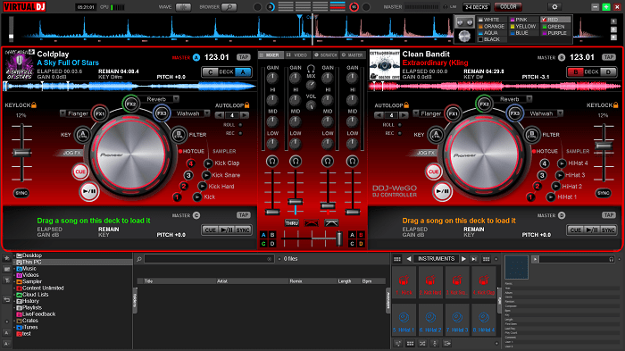 这个虚拟 DJ 设备的界面很直观,没有需要任何先前的知识才能让您了解它。例如,您可以使用简单的拖放操作导入 MP3 格式的音频文件,然后将它们混合成您喜欢的内容!