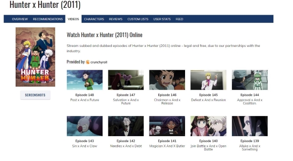 Anime Planet 是另一个深受喜爱的动漫,也是另一个在线观看 Hunter x Hunter 的好地方。它在站点内有从其他来源获得的数千个标题,Crunchyroll 就是其中之一。我认为该网站是合法的,但不能保证。我没有看到任何警告,也没有听到任何关于它们的其他消息。