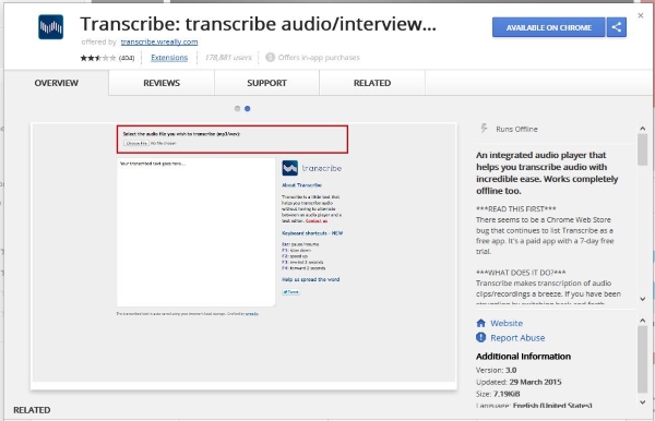 Transcribe 是一款 Chrome 浏览器插件,可帮助您将音频转换为文本。这不是免费工具,但提供 7 天免费试用,因此您可以在购买前试用。尽管是浏览器工具,但它可以离线工作,因此您的任何材料都不会上传到互联网。