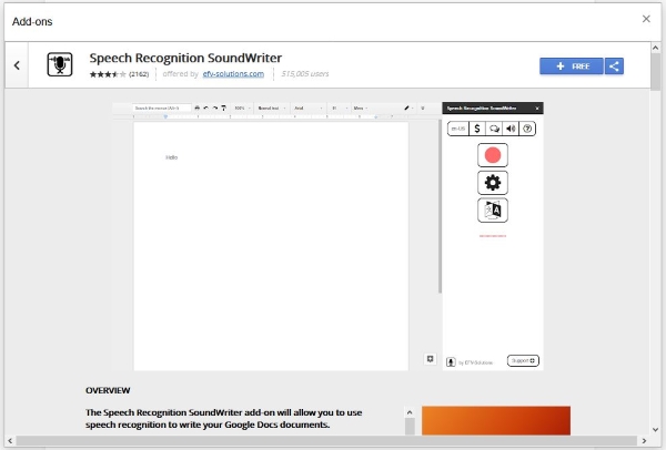 您需要做的就是将其安装到 Google Docs 中,打开一个新的 Doc,从工具菜单中打开语音识别 SoundWriter ,点击记录并开始。该工具在拾取声音并准确转录它们方面做得非常好。对于免费工具来说,这是一个真正的强大工具!
