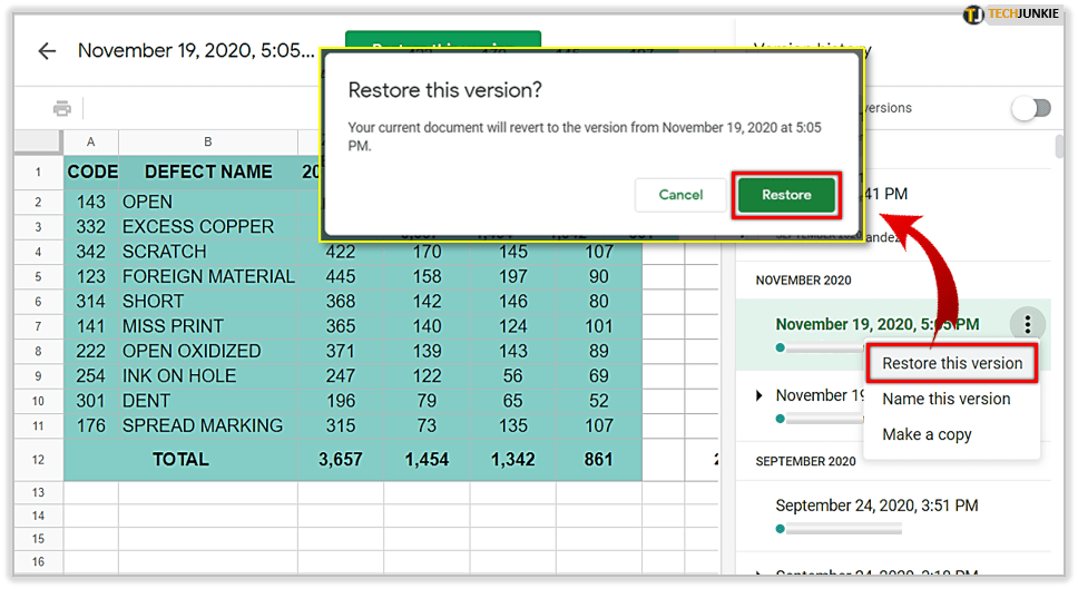 检查电子表格中更改的最可靠方法之一是打开旧版本并恢复它们。操作方法如下: