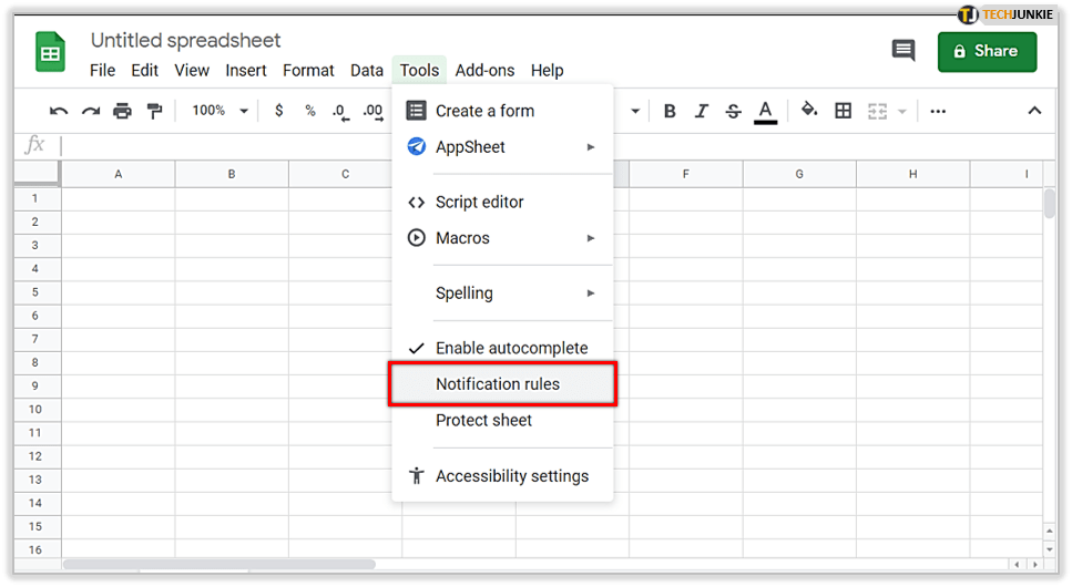 - 打开电子表格并打开“工具”菜单。