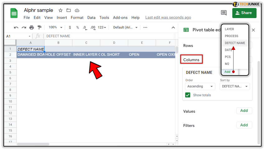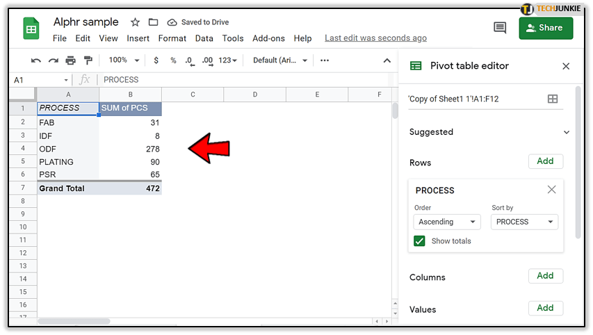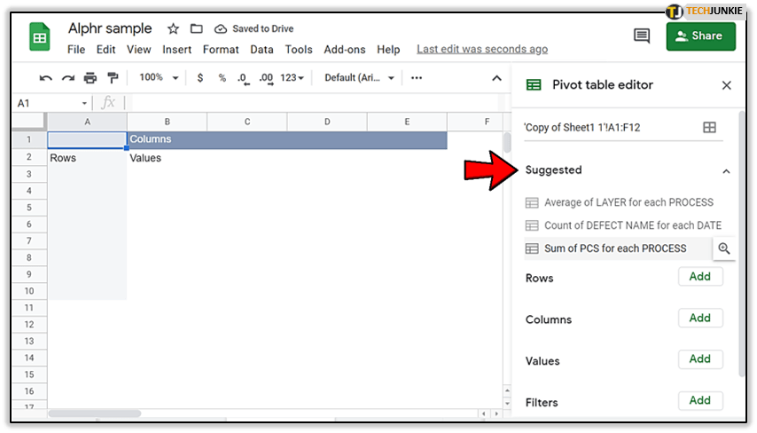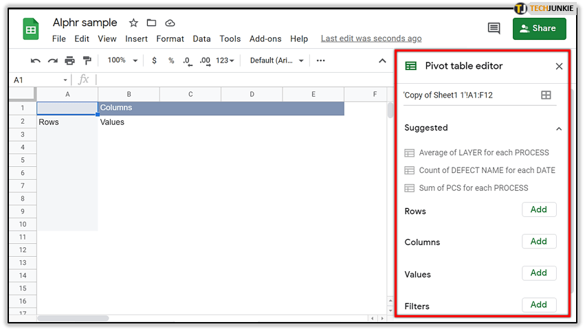 创建数据透视表很简单,只需要两个步骤。之后,您将能够看到一个侧面板,它将指导您完成编辑过程。