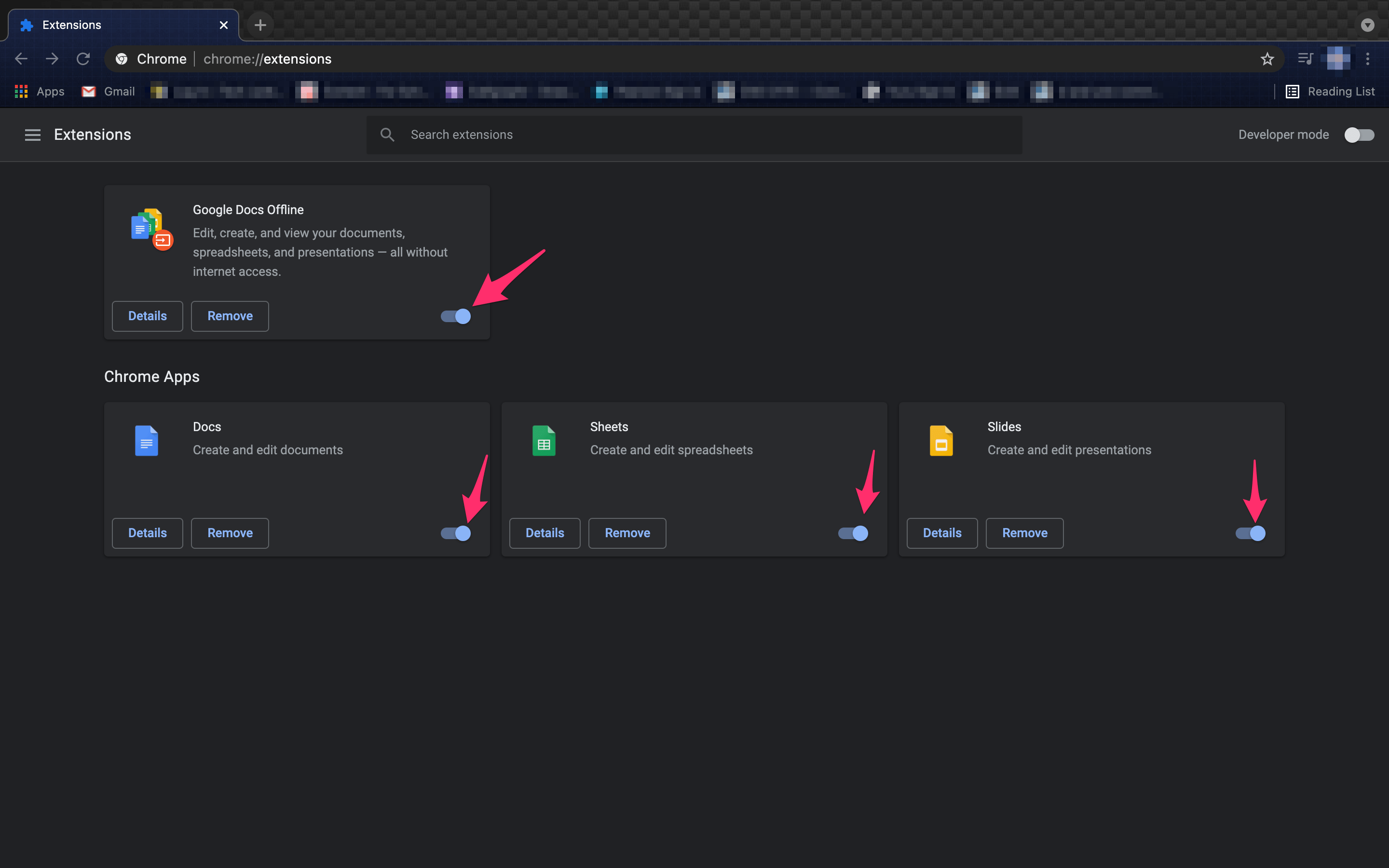 > li> - 通过取消选中它们的复选框来禁用一个或多个新的或过时的扩展。