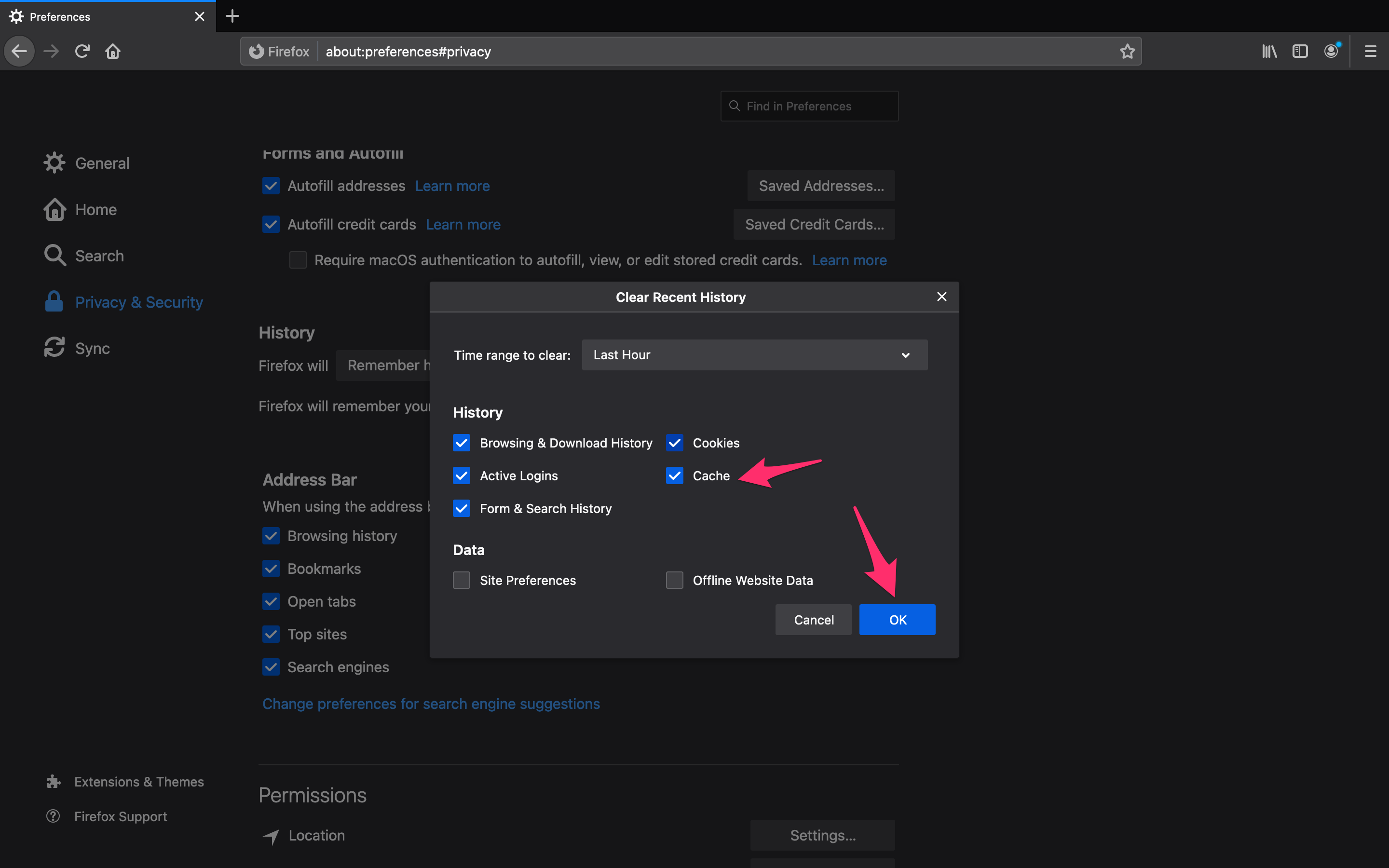 您也可以选择清除 Mozilla 的缓存。随着时间的推移,用于帮助您浏览网络的临时文件可能会导致问题。清除缓存应该可以解决问题。