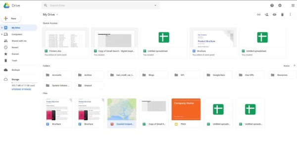Google 云端硬盘与其他应用程序具有相同的简约感觉,并将核心功能保持在前面和中心位置。白色的 UI 并不是很吸引人,但它会一直关注文件以及您在那里的用途,即管理您的存储和文件。 Google 云端硬盘具有与照片相同的图库布局,文件位于中心,菜单选项位于左侧。