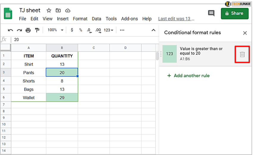 注意:记住这些步骤,因为您可以将它们应用于电子表格遇到的任何异常问题。条件格式总是一个可能的解决方案。