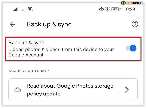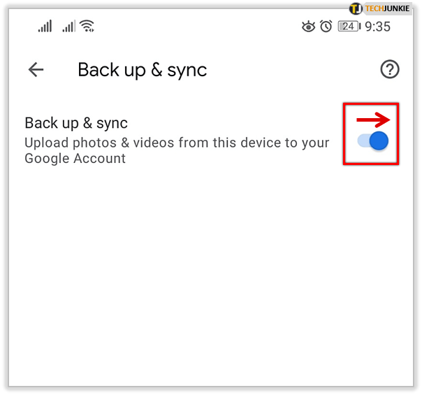 - 如果尚未设置,请选择“备份和同步”并将开关切换为“开”。