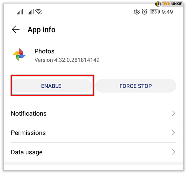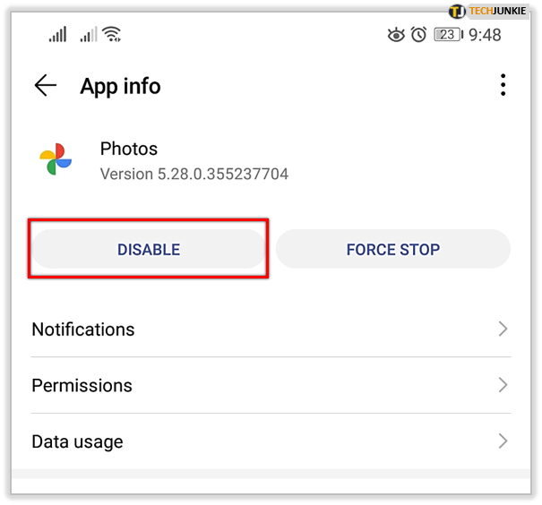 - 点按 Google 相册,然后点按“禁用”按钮。