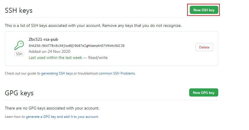 4.向你的 Git 账户中添加 SSH Key 认证,这里以 GitHub 账号为例 ;