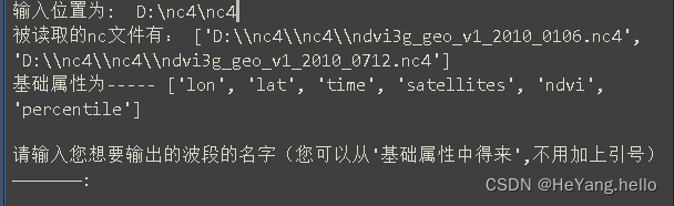 band_name = input("请输入您想要输出的波段的名字(您可以从'基础属性中得来',不用加上引号)———————:") #这里是从用户那传入一个波段的字符串,因为nc4的资料比nc要复杂,所以要让用户确定波段的名字