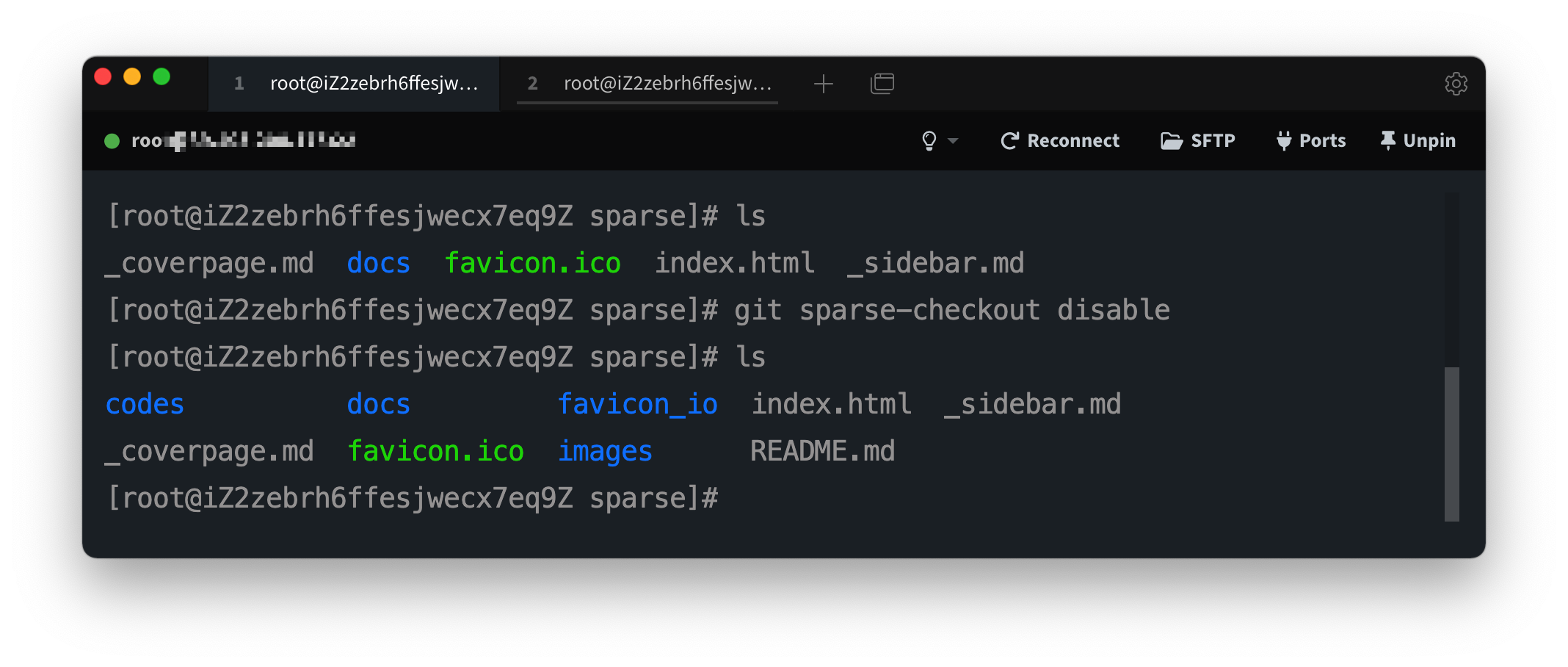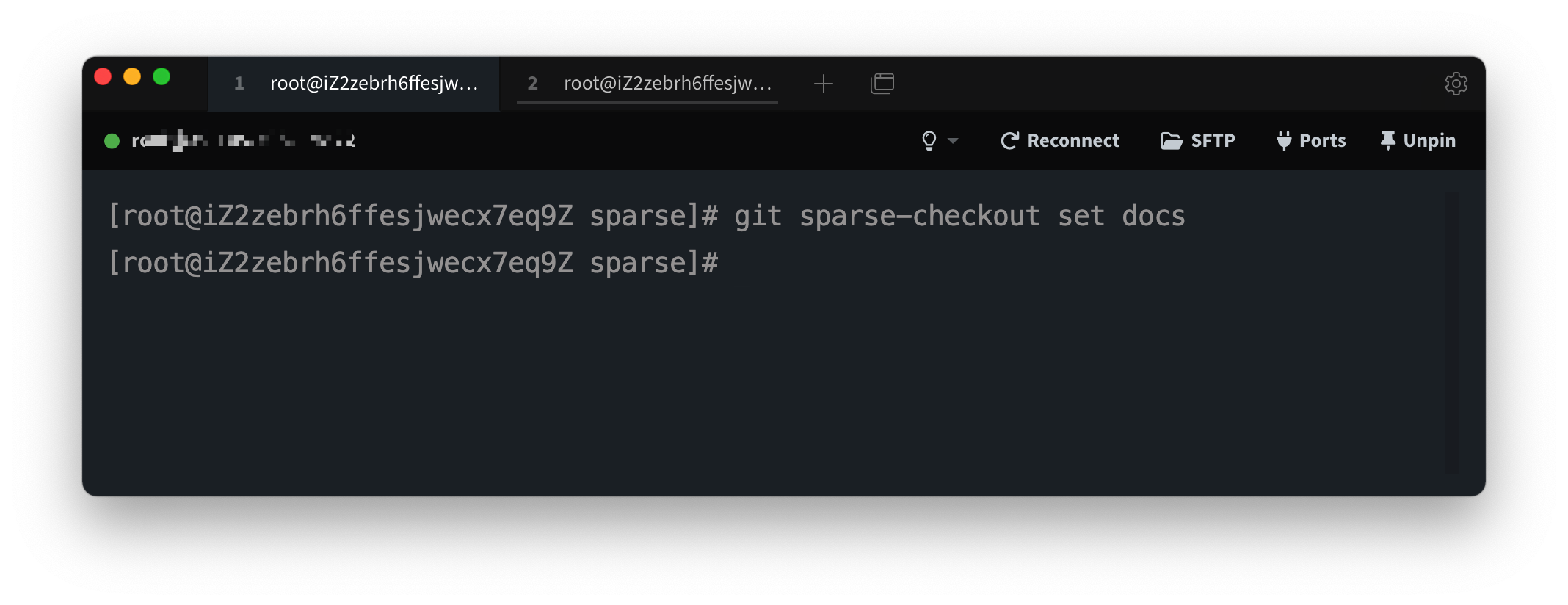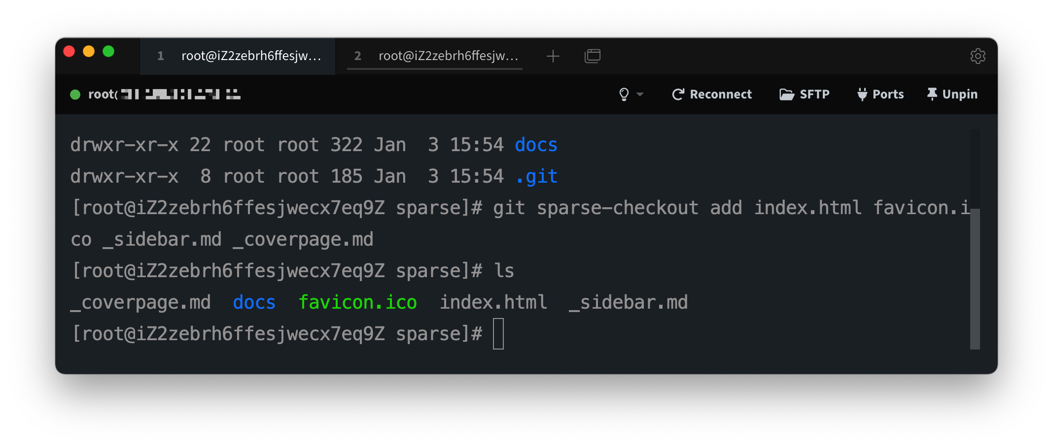 比如说,我们只想拉取 docs 目录,可以执行 git sparse-checkout set docs 命令,