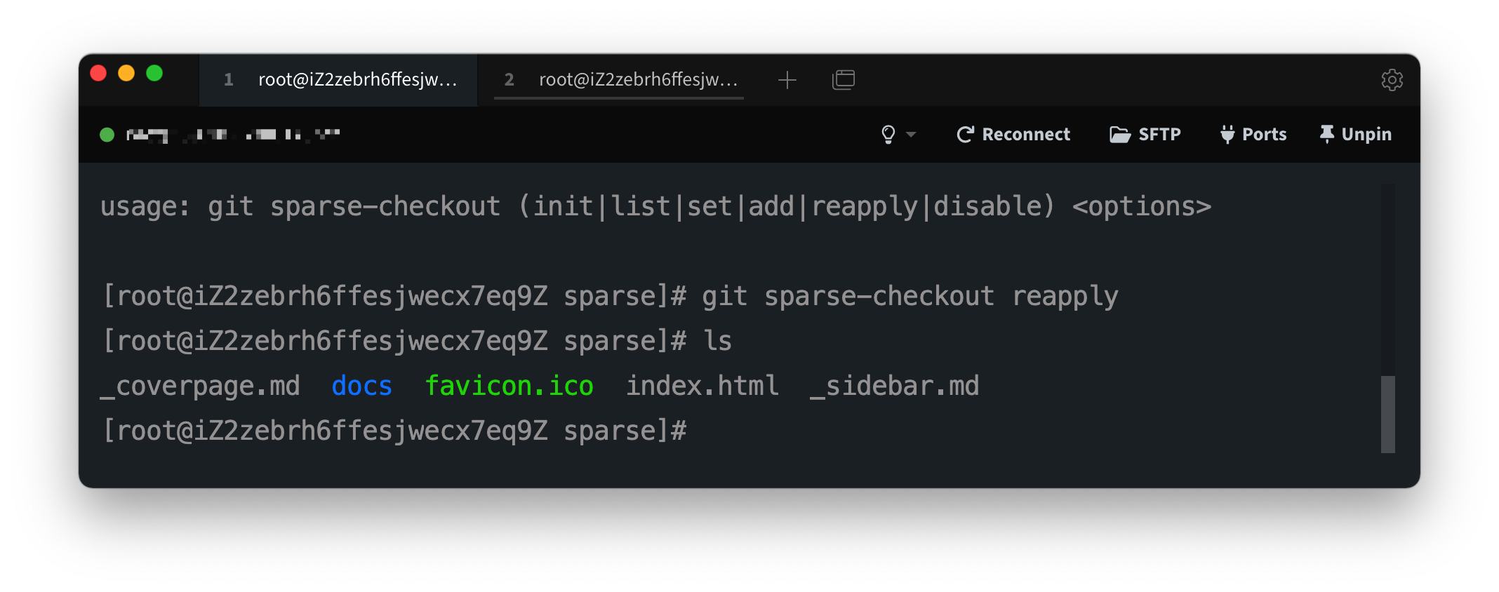 也简单,只需要执行一下 git sparse-checkout reapply 命令就可以了,