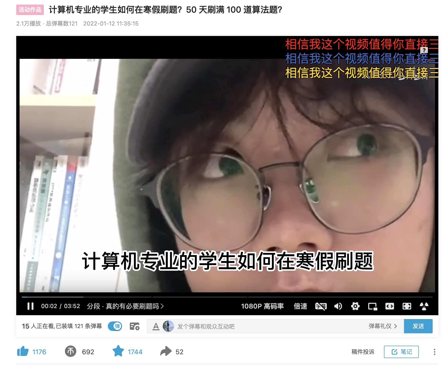 计算机专业的学生党可以通过下面的链接围观下,看看这个寒假该如何刷刷题,如果觉得视频有帮助的话,不妨三连支持下,让二哥的 B 站在 2022 年能小有起色,抱拳了,所谓星星之火,就靠你们去点燃了,