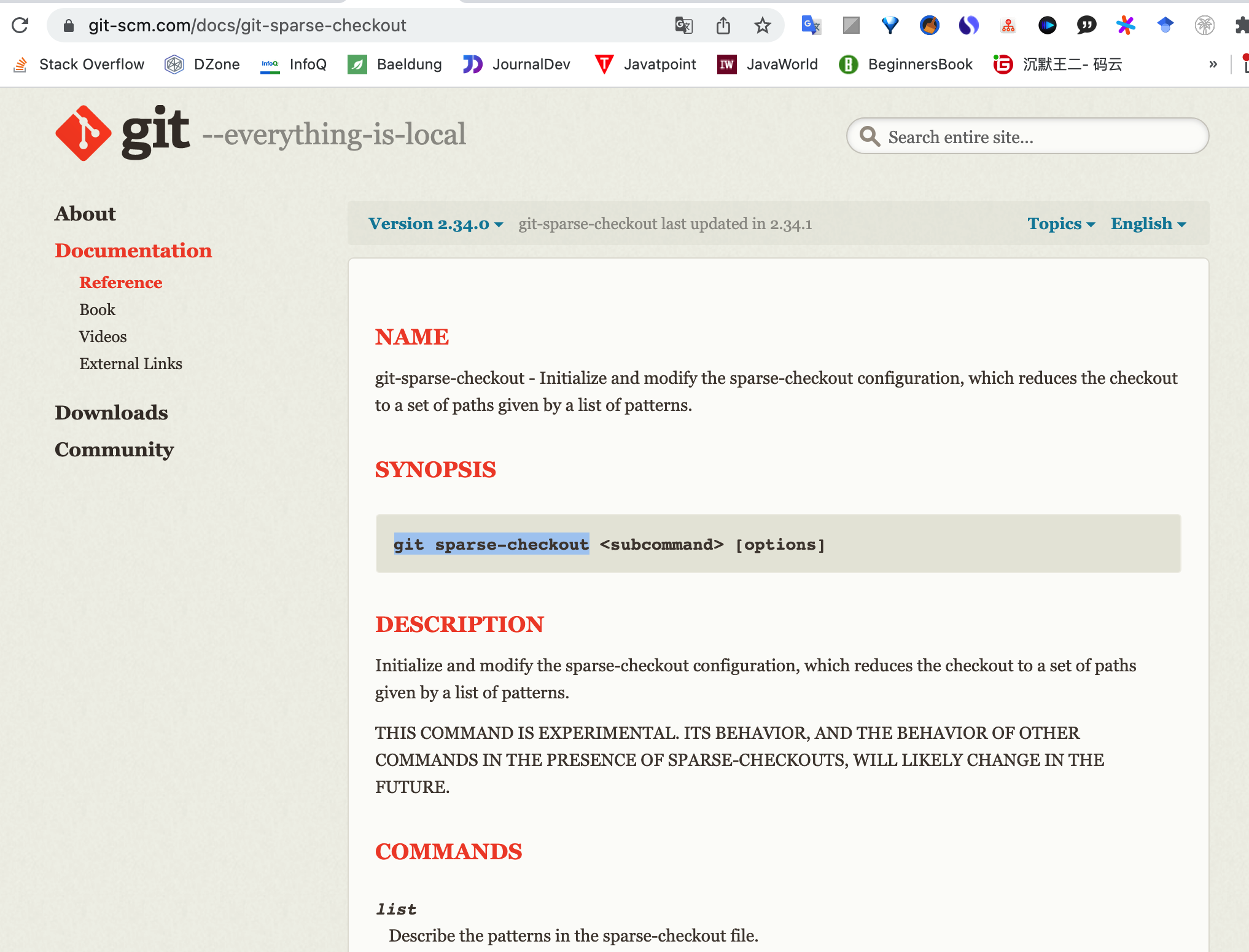最后还是浏览 Git 官方手册(也可以看Pro Git)才找到了一个牛逼的命令:git sparse-checkout,它可以帮助我们在拉取远程仓库的时候只同步那些我们想要的目录和档案,