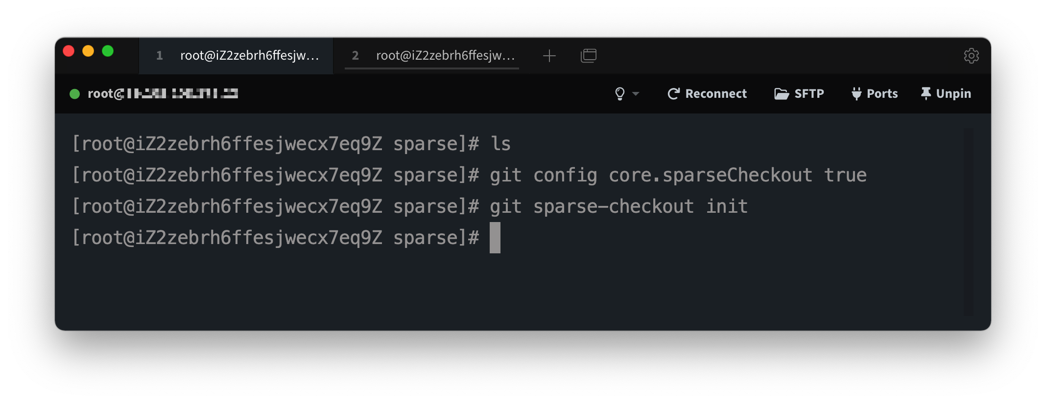 拉取到仓库后,执行 git config core.sparseCheckout true 命令启用 sparse-checkout,
