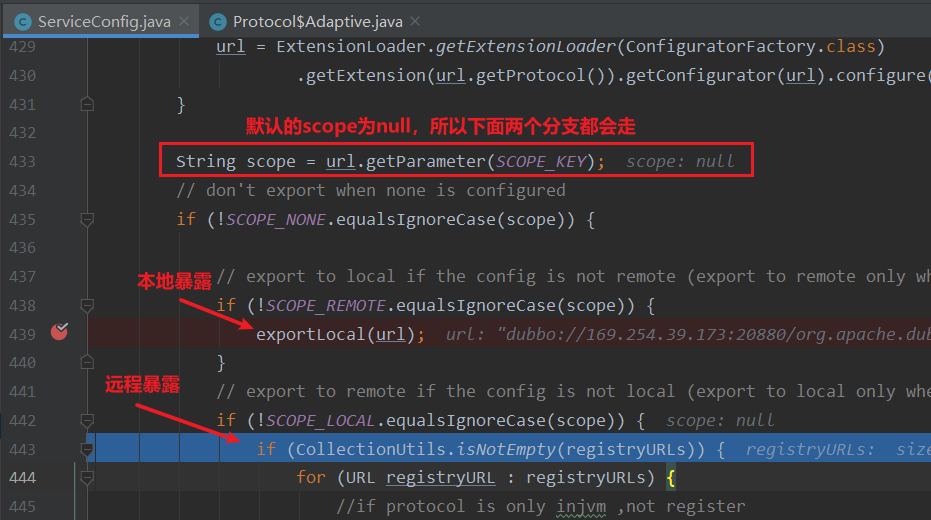 从这里我们知道,一个服务默认会本地暴露一次,同时还远程暴露一次;