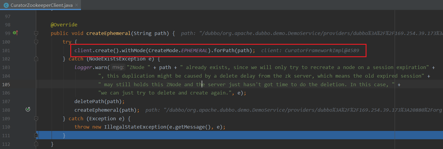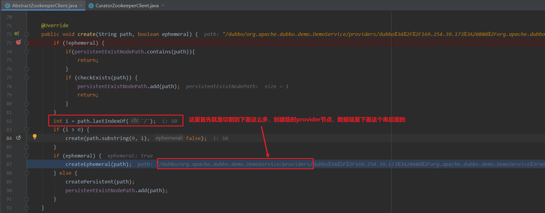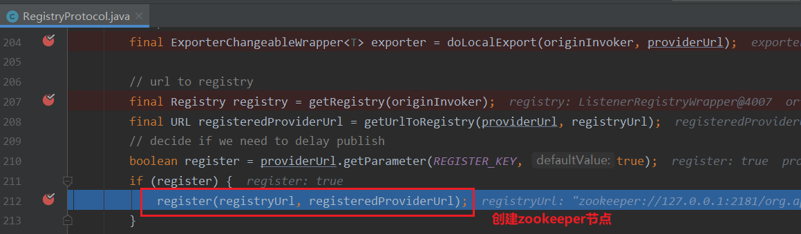 既然上面已经连接连接好了注册中心,现在就开始根据我们的服务信息去zookeeper中创建节点了