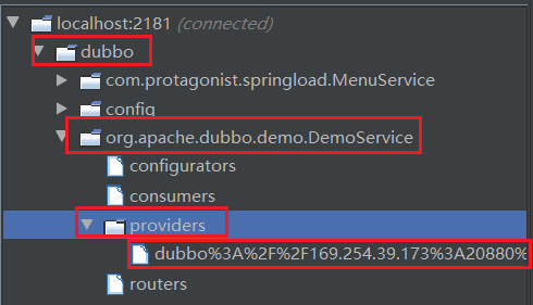 然后我们就可以到zookeeper中可以看到provider节点了(注意,这里使用的操作zookeeper的工具是curator,有兴趣的可以花一分钟看看zkClient和curator的区别)