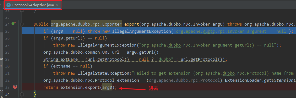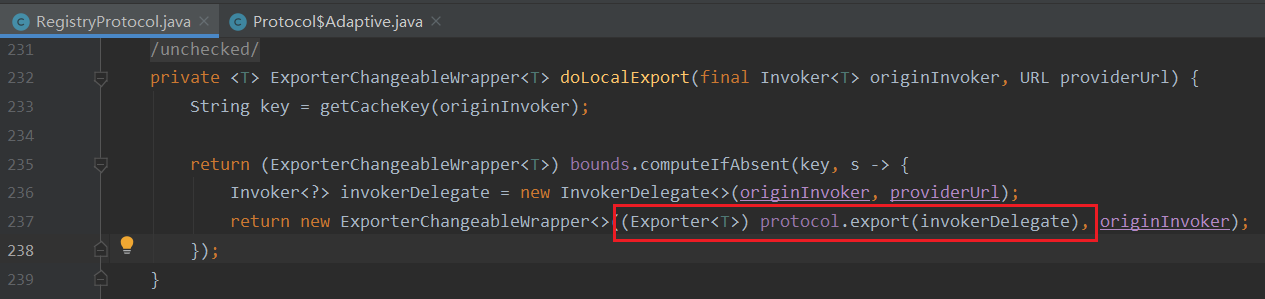 从上图中国protocal.export()方法进入,下面这个类在上一篇博客已经说了,需要我们自己手动创建的