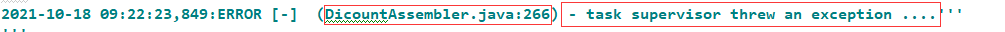 '''2021-10-18 09:22:23,849:ERROR [-] (DicountAssembler.java:266) - task supervisor threw an exception ....''',