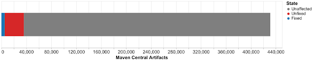 这正是 JVM 生态整体上修复此漏洞例外困难的原因,安全研究人员称,在撰写文章时,只修复了近五千个受影响的软件包,还有 30000 多个软件包会受到漏洞的影响,