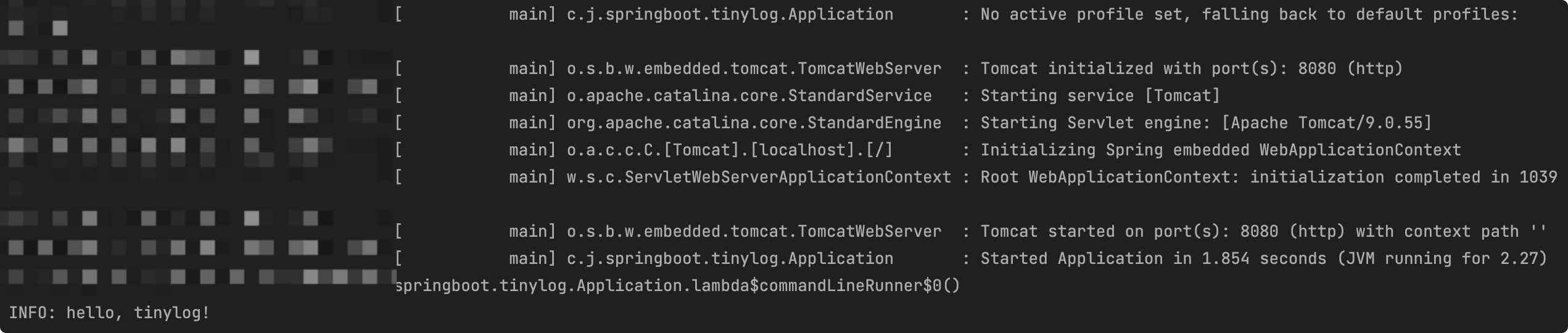 如图,系统在启动后输出了我们的日志,