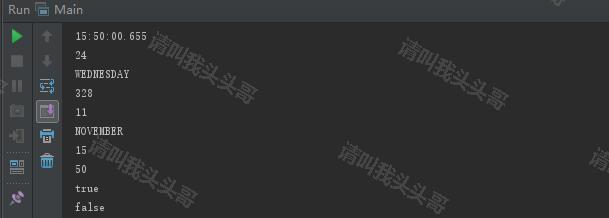 LocalDateTime localDateTime = LocalDateTime.now(); //时间运算,相加相减 System.out.println(localDateTime.plusYears(2)); //加2年 System.out.println(localDateTime.plusDays(2)); //加两天 System.out.println(localDateTime.minusYears(2)); //减两年 System.out.println(localDateTime.minusDays(2)); //减两天 System.out.println(localDateTime.toString()); // 转字符串 结果:2021-11-24T15:36:12.914 System.out.println(localDateTime.toLocalDate()); //获取日期(LocalDate) 结果:2021-11-24 System.out.println(localDateTime.toLocalTime()); //获取时间(LocalTime) 结果:15:36:12.914 System.out.println(localDateTime.getDayOfMonth()); //获取当前时间月份的第几天 结果:24 System.out.println(localDateTime.getDayOfWeek()); //获取当前周的第几天 结果:WEDNESDAY System.out.println(localDateTime.getDayOfYear()); //获取当前时间在该年属于第几天 结果:328 System.out.println(localDateTime.getMonthValue()); // 获取当前时间的月份(阿拉伯文) 结果:11 System.out.println(localDateTime.getMonth()); // 获取当前时间的月份(英文) 结果:11 System.out.println(localDateTime.getHour()); // 获取当前时间的小时数 结果:15 System.out.println(localDateTime.getMinute()); // 获取当前时间的分钟数 结果:36 //格式化输出 DateTimeFormatter formatter = DateTimeFormatter.ofPattern("YYYY/MM/dd HH:mm:ss"); System.out.println(localDateTime.format(formatter)); // 结果:2021/11/24 15:36:12 //构造时间 LocalDateTime startTime = LocalDateTime.of(2021, 1, 1, 20, 31, 20); LocalDateTime endTime = LocalDateTime.of(2021, 1, 3, 20, 31, 20); //比较时间 System.out.println(localDateTime.isAfter(startTime)); // 结果:true System.out.println(localDateTime.isBefore(endTime)); // 结果:false //获取毫秒数(使用Instant) System.out.println(localDateTime.atZone(ZoneId.systemDefault()).toInstant().toEpochMilli()); // 结果:1637739570129 //获取秒数(使用Instant) System.out.println(localDateTime.atZone(ZoneId.systemDefault()).toInstant().getEpochSecond()); // 结果:1637739570 // 获取当前时间的0点~23点 LocalDateTime beginDay = localDateTime.withHour(0).withMinute(0).withSecond(0).withNano(0); LocalDateTime endDay = localDateTime.withHour(23).withMinute(59).withSecond(59); // 获取本月的第一天的0点0分0秒和最后一天的23点59分59秒 LocalDateTime beginMonth = localDateTime.with(TemporalAdjusters.firstDayOfMonth()).withHour(0).withMinute(0).withSecond(0); LocalDateTime endMonth = localDateTime.with(TemporalAdjusters.lastDayOfMonth()).withHour(23).withMinute(59).withSecond(59); // LocalDateTime转Date Date date = Date.from(localDateTime.toInstant(ZoneOffset.of("+8"))); // Date转LocalDateTime date.toInstant().atOffset(ZoneOffset.of("+8")).toLocalDateTime(); // LocalDateTime获取秒数 Long second = LocalDateTime.now().toEpochSecond(ZoneOffset.of("+8")); // LocalDateTime获取毫秒数 Long milliSecond = LocalDateTime.now().toInstant(ZoneOffset.of("+8")).toEpochMilli();