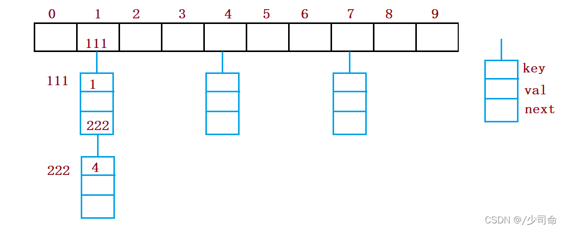 开散列法又叫链地址法(开链法),首先对关键码集合用散列函式计算散列地址,具有相同地址的关键码归于同一子 集合,每一个子集合称为一个桶,各个桶中的元素通过一个单链表链接起来,各链表的头结点存盘在哈希表中,