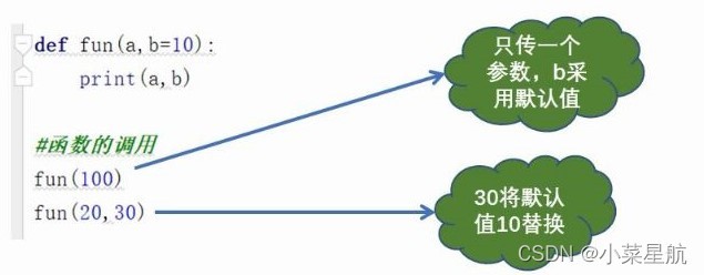 函式定义时给形参设定默认值,只有与默认值不符的时候才需要传递实参,