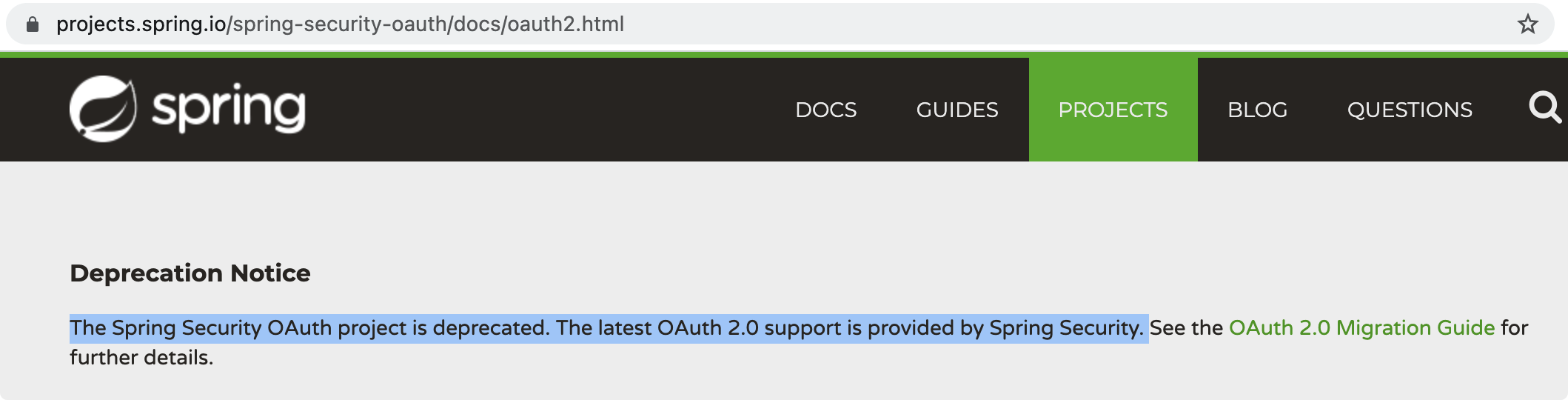Spring Security OAuth 项目已被 Spring Security 项目接管,Spring Security 也不再包含对授权服务器的支持,