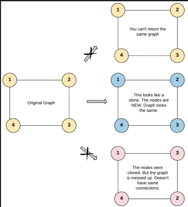 给你无向 连通 图中一个节点的参考,请你回传该图的 深拷贝(克隆), 图中的每个节点都包含它的值 val(int) 和其邻居的串列(list[Node]), class Node { 测验用例格式: 简单起见,每个节点的值都和它的索引相同,例如,第一个节点值为 1(val = 1),第二个节点值为 2(val = 2),以此类推,该图在测验用例中使用邻接串列表示, 邻接串列 是用于表示有限图的无序串列的集合,每个串列都描述了图中节点的邻居集, 给定节点将始终是图中的第一个节点(值为 1),你必须将 给定节点的拷贝 作为对克隆图的参考回传,