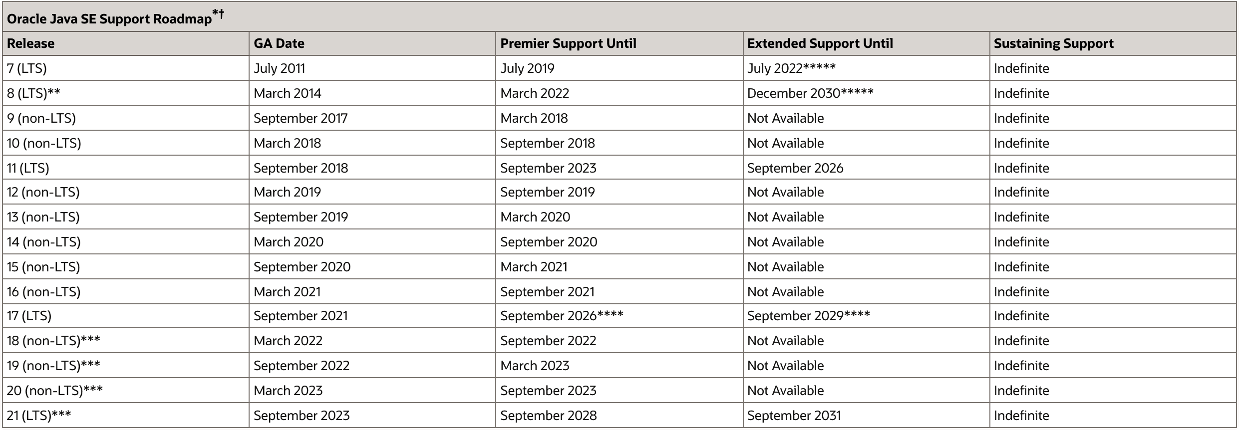 来看下最新 Oracle Java 支持路线图: