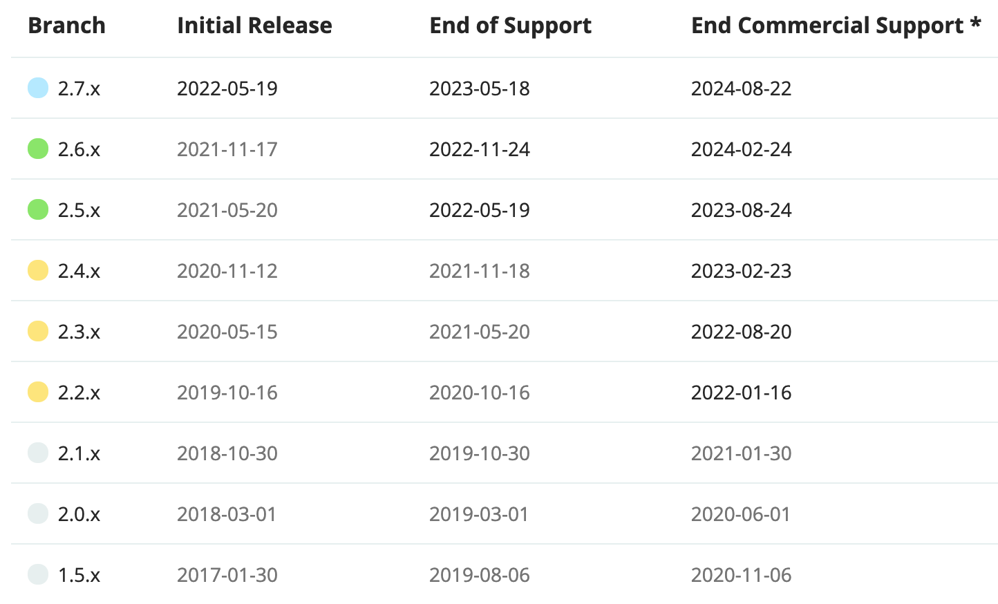 我们来看下 2021 几个重要项目的最新版本: