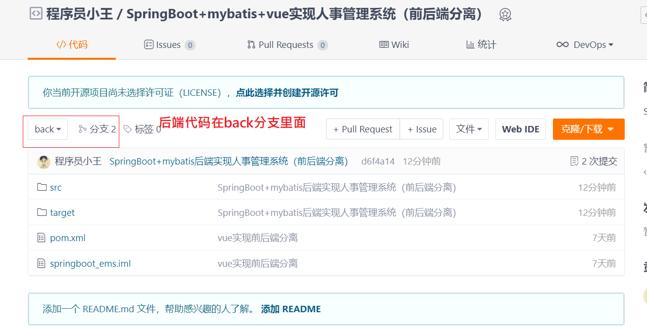 - Springboot+mybatsi后端的代码位置在back分支里面