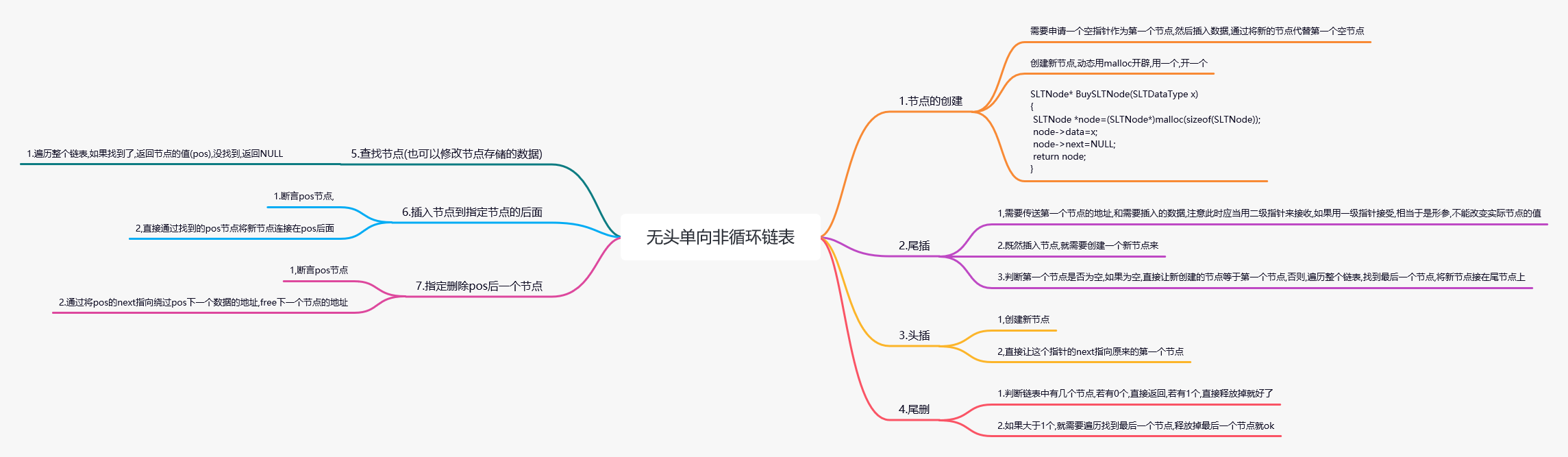 1 #include<stdio.h> 2 #include <stdlib.h> 3 #include<malloc.h> 4 #include<assert.h> 5 6 typedef int SLTDataType; 7 8 typedef struct SListNode 9 { 10 SLTDataType data; 11 struct SListNode* next; 12 }SLTNode; 13 14 // 单向+不带头+不回圈 15 void SListPrint(SLTNode* plist); //打印链表 16 SLTNode* BuySLTNode(SLTDataType x);//创建节点 17 void SListPushBack(SLTNode** pplist, SLTDataType x); //尾插 18 void SListPushFront(SLTNode** pplist, SLTDataType x);// 头插 19 20 void SListPopBack(SLTNode** pplist); //尾删 21 void SListPopFront(SLTNode** pplist);//头删 22 23 SLTNode* SListFind(SLTNode* plist, SLTDataType x);//查找 24 void SListInsertAfter(SLTNode* pos,SLTDataType x);//pos后插入 25 void SListInsertBefore(SLTNode**pplist,SLTNode* pos,SLTDataType x);//pos前插入 26 void SListEraseAfter(SLTNode* pos);//洗掉指定资料