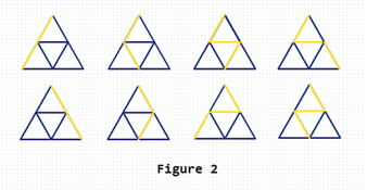 先用下图所示的边长为4的三角形来列举边长n<=4的三角形个数,